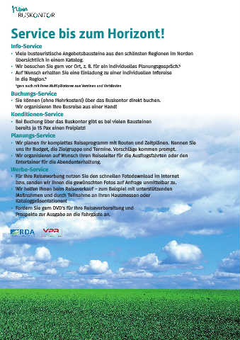 Regionen sortiert. Die touristischen De- Der wichtigste Aspekt dabei ist das Vertrauen • Bei Buchung über das Buskontor gibt es bei vielen Bausteinen
